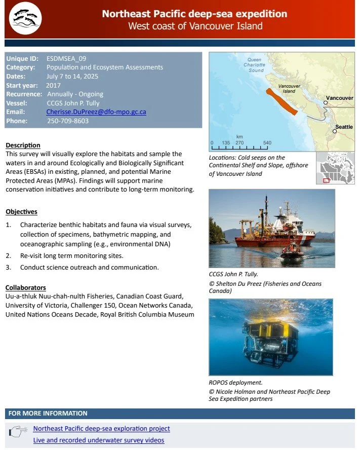 Fisheries and Oceans Canada post all expedition for the coming year to ensure transparency and promote collaboration. Check out the 94 field operations including the NEPDEP expedition!